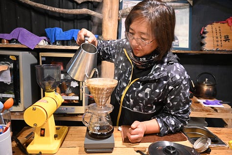 Ce qui change aussi ici, c’est le rituel qui s’est développé autour de la préparation du café. Il faut parfois être patient... Dans un petit café de la ville portuaire de Su’ao, avec les parents, nous avions attendu plus d’une demi-heure avant d’être servis, car deux autres tables s’étaient installés juste avant nous.